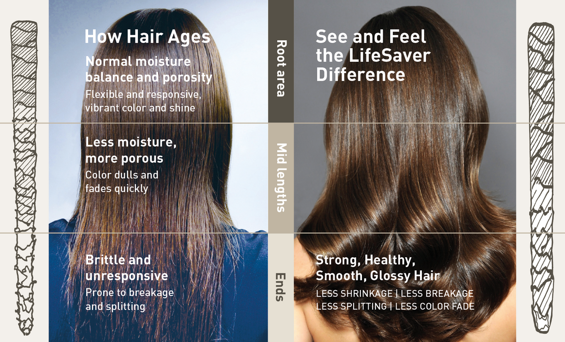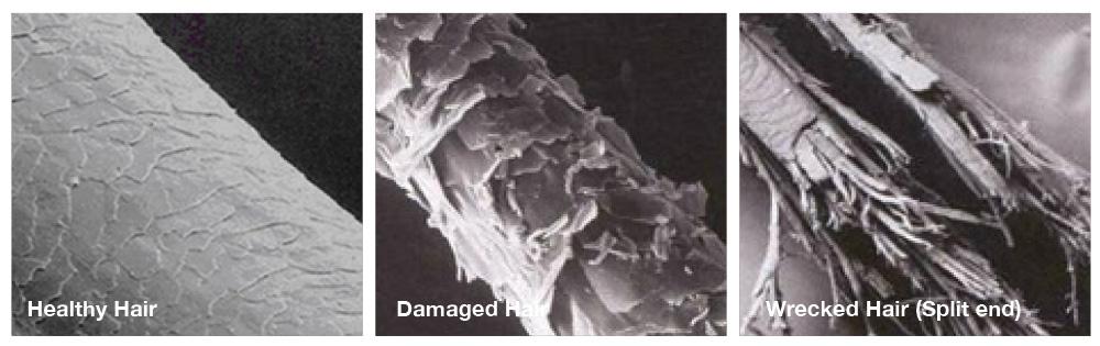 Once hair grows out of the scalp it is no longer part of the living tissue and so cannot repair itself. From here it starts to suffer the wear and tear of everyday living - UV light, aggressive heat styling, poor quality products, seawater, chlorine, hair colourants and other chemical processes.